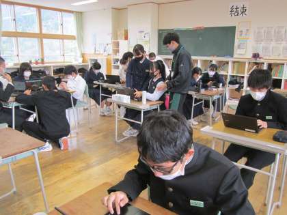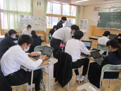 3年5限 「総合的な学習の時間(楡の木タイム)」 公開日 2021/11/02 更新日 2021/11/02 日々の活動から 11月2日(火) 3年生の「総合的な学習の時間(楡の木タイム)」の様子です。 SDGsのために自分たちにもできることは何かを調べてまとめ、学習発表会に発表できるように準備を進めました。
