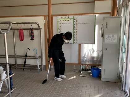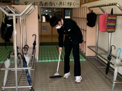 環境実践部 朝清掃 公開日 2021/11/08 更新日 2021/11/08 日々の活動から 11月8日(月) 今朝も環境実践部員が、生徒玄関の清掃をしてくれていました。 キレイな玄関で、気持ちよく登校できるようにしてくれています。