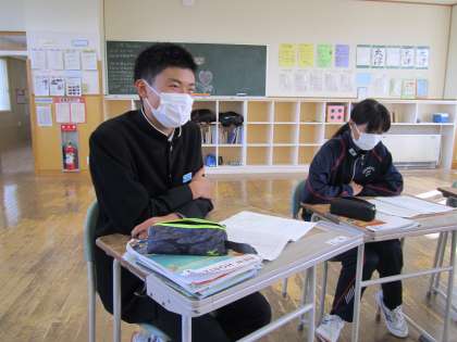 11月8日(月) 2年生の英語の授業の様子です。 中教研テストの見直しをしました。