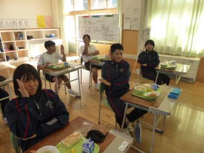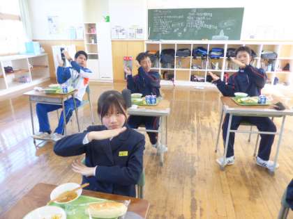 11月8日(月) 1年生の給食風景です。 今日も楽しいポーズをありがとうございました。