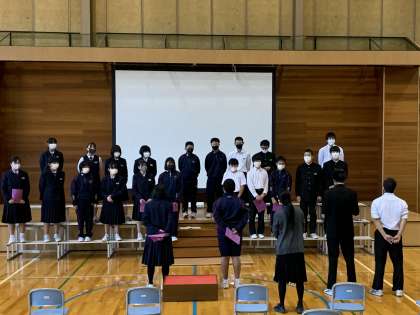 放課後 合唱練習 公開日 2021/11/08 更新日 2021/11/08 日々の活動から 11月8日(月) 今日から放課後合唱練習が始まりました。 今週1週間は、部活動をせず、今週末の学習発表会に向けて準備をしていきます。 画像は、合唱練習終了後にパートリーダーが振り返りを伝えている様子です。 今週1週間、学習発表会に向けて頑張りましょう!