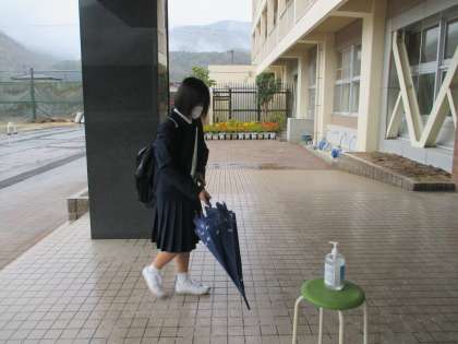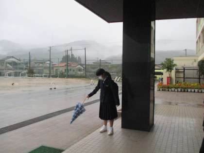 11月9日(火) 今朝の登校風景です。 本校生徒は、強い雨の中でも元気に登校してきました。