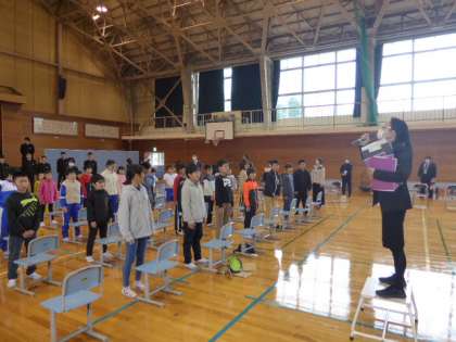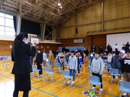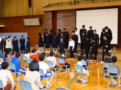 学習発表会に向けて、小中合同合唱練習を行いました。
