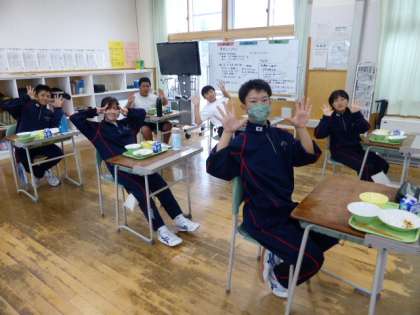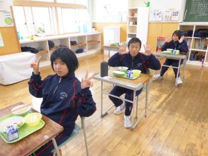 11月9日(火) 1年生の給食風景です。 席替えをしました。