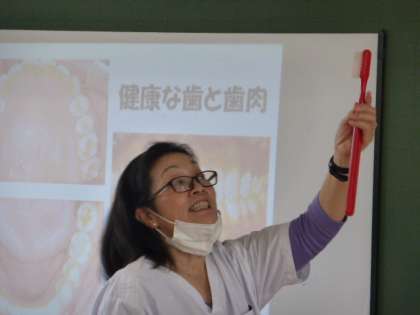 富山県歯科衛生士会富山支部 山田 尚代 歯科衛生士 から1・2年生が歯磨きの指導を受けました。