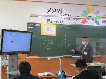 さまざまな作図の仕方を代表生徒が説明して、みんなで考え方を共有しました。