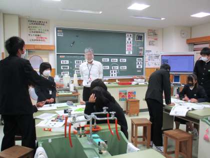 3年5限 理科 公開日 2021/11/10 更新日 2021/11/10 日々の活動から 11月10日(水) 3年生の理科の授業の様子です。 「さまざまなエネルギーについて考えよう」という内容の授業でした。