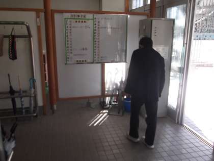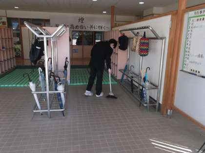 昨日もグラウンドで体育の授業を行ったので、生徒玄関に土が入り込んでいましたが、キレイにしてくれました。