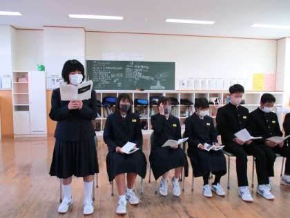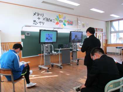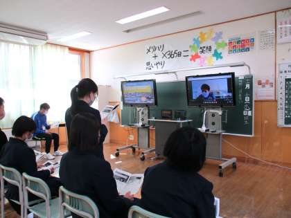 1年2限 「総合的な学習の時間(楡の木タイム)」 公開日 2021/11/11 更新日 2021/11/11 日々の活動から 11月11日(木) 1年生の「総合的な学習の時間(楡の木タイム)」の様子です。 3限に岩瀬中学校の1年生とリモート交流するリハーサルをしました。