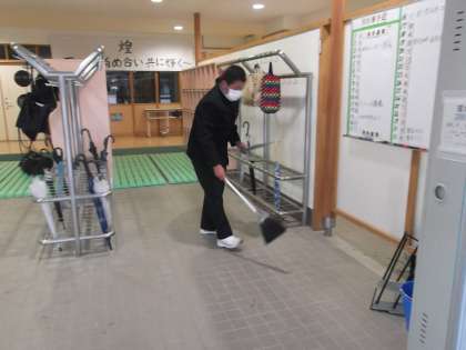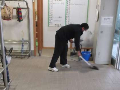 今日の朝清掃は、環境実践部長が責任もってやってくれました。