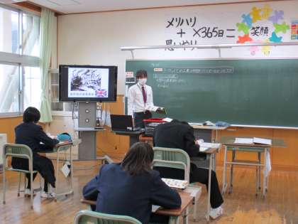 1年2限 社会 公開日 2021/11/12 更新日 2021/11/12 日々の活動から 11月12日(金) 1年生の社会の授業の様子です。 「ヨーロッパの工業の特徴とEUとのつながりを知ろう」という内容の授業でした。
