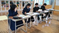 歌と出入りの練習、各学年の発表まで中学生の部をすべて通してリハーサルをしました。