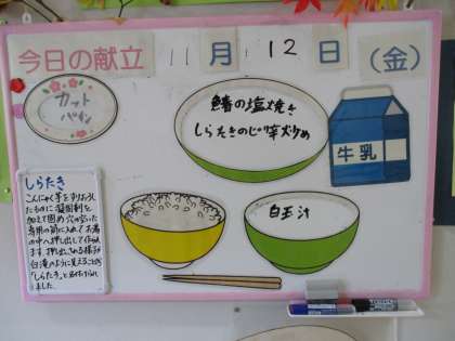 今日の給食の献立は、次のとおりです。