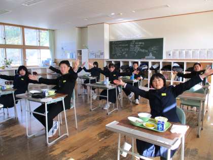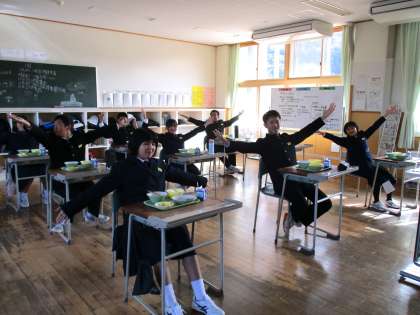 11月12日(金) 1年生の給食風景です。 放送当番の生徒もいました。