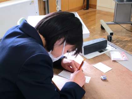 2年5限 道徳 公開日 2021/11/12 更新日 2021/11/12 日々の活動から 11月12日(金) 2年生の「総合的な学習の時間(楡の木タイム)」の様子です。 明日の発表の最終確認をしました。