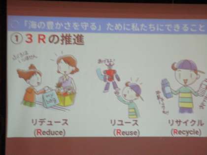 ゴミのほとんどがプラスティックゴミであるということや3Rの推進を呼びかけました。