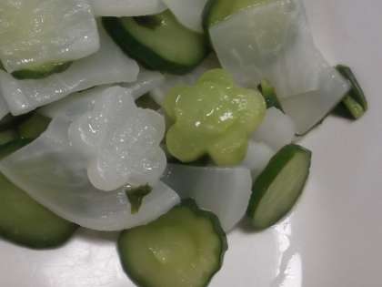 また、「かぶのサラダ」に〈花びら型〉の《きゅうり》と《かぶ》が入っていました。