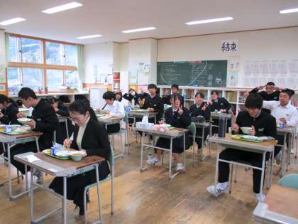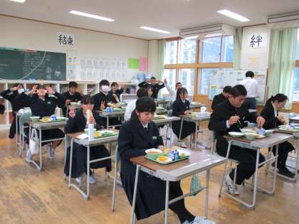 11月15日(月) 3年生の給食風景です。 放送当番の生徒もいました。