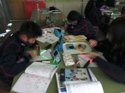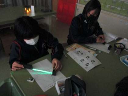 光の反射の実験をしていました。
