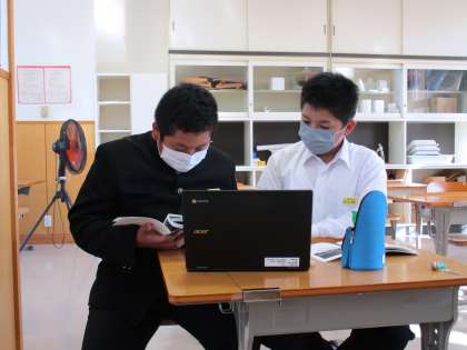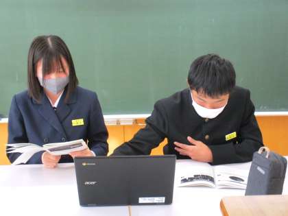 クロムブックを使って岩瀬中学校とオンライン交流を行いました。