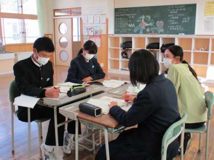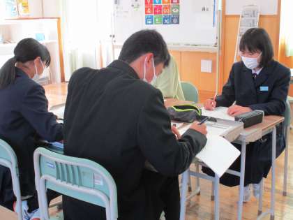 グループになって学び合い、教え合い学習をしました。