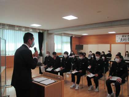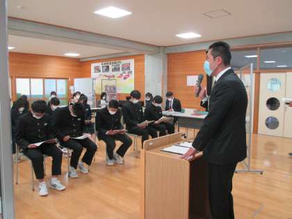3年5・6限 進路説明会及び進路相談会 公開日 2021/11/19 更新日 2021/11/19 日々の活動から 11月19日(金) 3年生は、5・6限進路説明会及び進路相談会を行いました。 鍋田校長より挨拶があり、その後教務主任から今年度の進路指導方針等について話がありました。