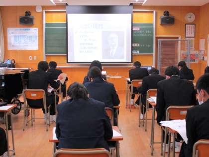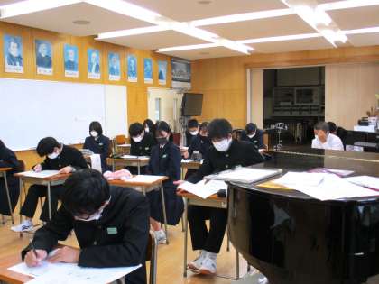 11月22日(月) 3年生の音楽の授業の様子です。 「近代・現代」の音楽史について学習しました。