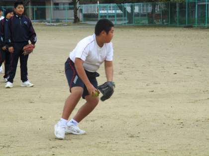 11月22日(月) 1年生の保健体育の授業の様子です。 ソフトボールの実技テストをしていました。