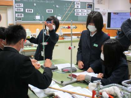 3年2限 理科 公開日 2021/11/22 更新日 2021/11/22 日々の活動から 11月22日(月) 3年生の理科の授業の様子です。 「滑車を使う時の仕事について調べよう」という内容の授業でした。