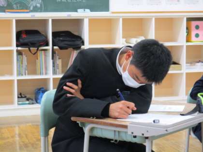 2年6限 学級活動 公開日 2021/11/22 更新日 2021/11/22 日々の活動から 11月22日(月) 2年生の学級活動の様子です。 学校生活アンケートを行い、残った時間は期末考査に向けて自習をしました。