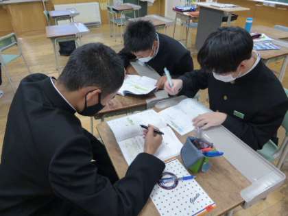 放課後 「SL(Self Learning)の会」 公開日 2021/11/24 更新日 2021/11/24 日々の活動から 11月24日(水) 1、2年生は、期末考査期間に入り、部活動が停止中です。 その間、放課後、学校で自主的に学習する姿が見られます。 「SLの会」は、16時45分までです。 下校完了が17時です。 時間いっぱい納得できるまでがんばりましょう!