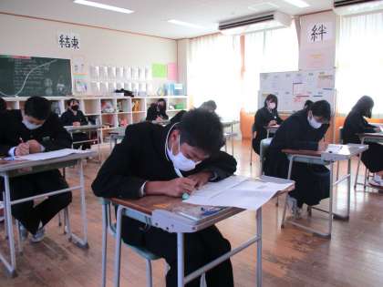 11月25日(木) 3年生の保健体育の期末考査の様子です。 本日最後の教科でした。