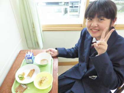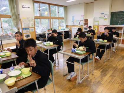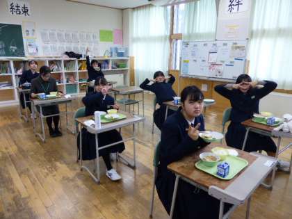 11月25日(木) 3年生の給食風景です。 放送当番の生徒もいました。