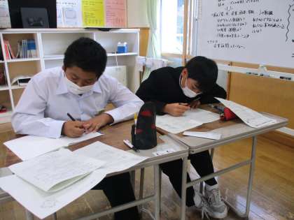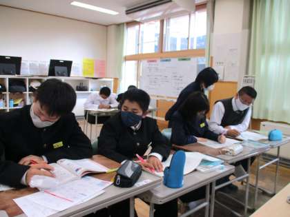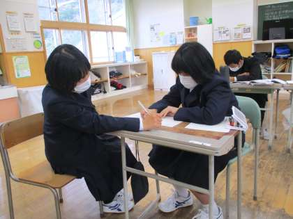 11月25日(木) 1年生の数学の授業の様子です。 期末考査に向けての弱点補強を学び合い学習で行いました。