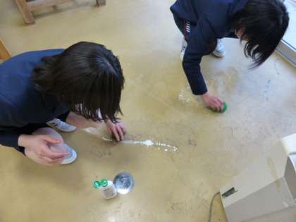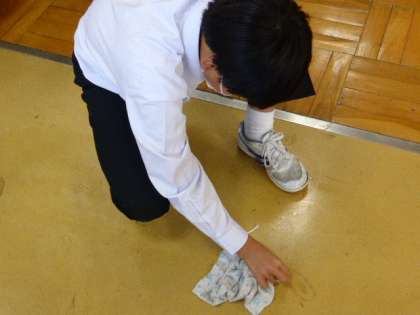 校内ピカピカタイム 公開日 2021/11/25 更新日 2021/11/25 日々の活動から 足跡が付いていた床もクレンザーで磨きました。 視聴覚室でも活動しました。 最後は体育館に集合して、環境実践部長が挨拶して終了しました。
