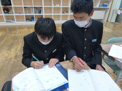 本日は、先輩が後輩に教える姿や教科担任に質問に来る姿が見られました。