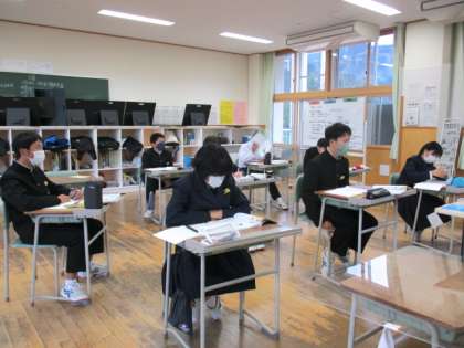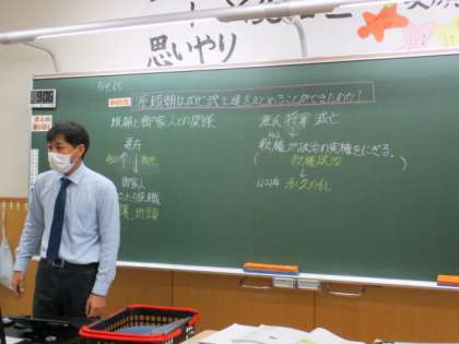 1年1限 社会 公開日 2021/11/26 更新日 2021/11/26 日々の活動から 11月26日(金) 1年生の社会の授業の様子です。 「源頼朝はなぜ武士たちをまとめることができたか」という内容の授業でした。