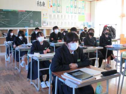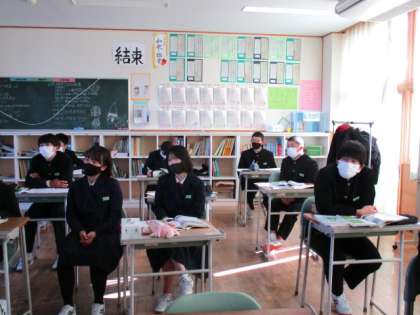 3年2限 理科 公開日 2021/11/29 更新日 2021/11/29 日々の活動から 11月29日(月) 3年生の理科の授業の様子です。 DVDを見ながら位置エネルギー・運動エネルギー・力学的エネルギーについて学習しました。