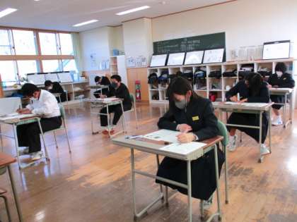 1年6限 技術・家庭科 期末考査 公開日 2021/11/29 更新日 2021/11/29 日々の活動から 11月29日(月) 1年生の技術・家庭科の期末考査の様子です。 本日6限は、全学年技術・家庭科の期末考査でした。