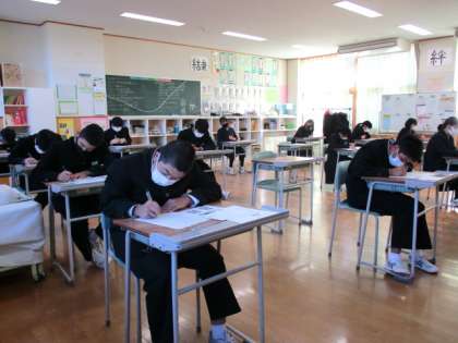 11月29日(月) 3年生の技術・家庭科の期末考査の様子です。