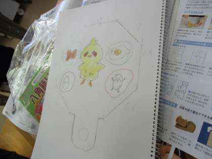 11月30日(火) 1年生の美術の授業の様子です。 自分の描いた下書きのとおりになべ敷きに彫刻しました。