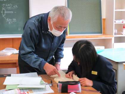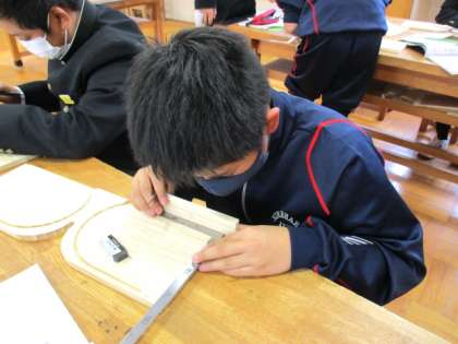 12月1日(水) 1年生の技術科の授業の様子です。 木材に必要な線を引く作業(けがき)をしていました。