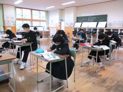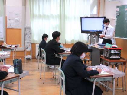 1年6限 社会 公開日 2021/12/01 更新日 2021/12/01 日々の活動から 12月1日(水) 1年生の社会の授業の様子です。 「鎌倉時代にはどんな文化が生まれたのか」という内容の授業でした。