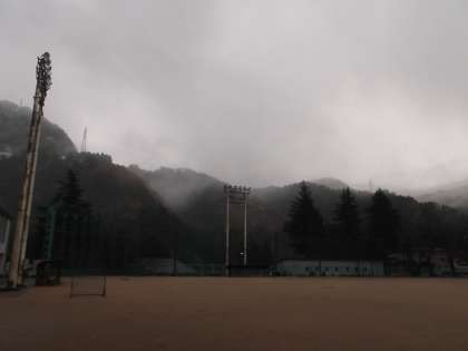 12月2日(木) 今朝は、周辺の山々が白く雪化粧をしていました。 時折、学校周辺でも白いものが降ってきました。
