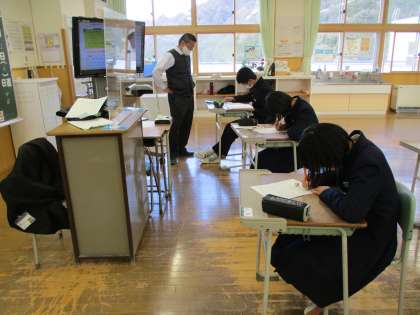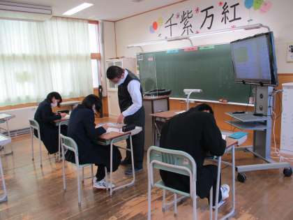 2年5限 数学 公開日 2021/12/02 更新日 2021/12/02 日々の活動から 12月2日(木) 2年生の数学の授業の様子です。 本日行った期末考査の振り返りをした後で、来週行われる数学検定に向けて、対策問題をしました。