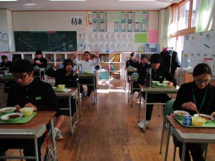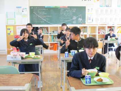 12月3日(金) 3年生の給食風景です。 テストが終わって、リラックスした雰囲気でした。
