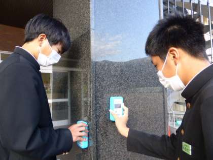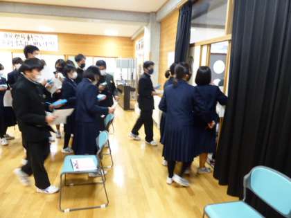 5・6限 講演会 公開日 2021/12/03 更新日 2021/12/03 日々の活動から 一番上の写真は、「はかるくん」を手に測定に向かう様子です。 真ん中の写真は、グラウンドを測定する生徒です。 一番下の写真は、玄関の柱を測定する生徒です。