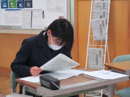 12月6日(月) 2年生の社会の授業の様子です。 期末考査の答案が返却されて、テストの見直しをしました。