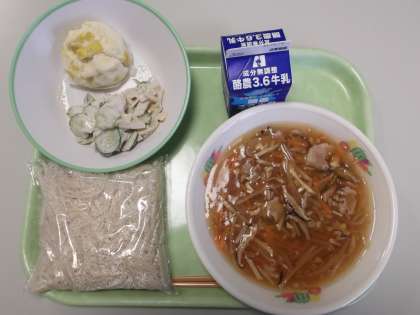 今日の給食の献立は、次のとおりです。