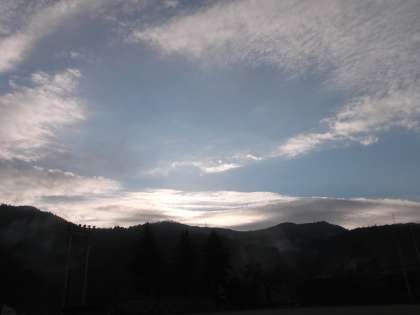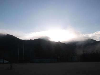 山から太陽も昇り、光り輝いていました。